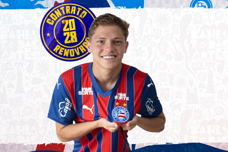 O Bahia anunciou, na tarde desta segunda-feira, a renovação do contrato de Dell até o fim de 2028. O antigo vínculo com o atacante de 17 anos terminava no final de 2027 e previa multa rescisória de 100 milhões de euros (R$ 617 milhões na cotação atual).