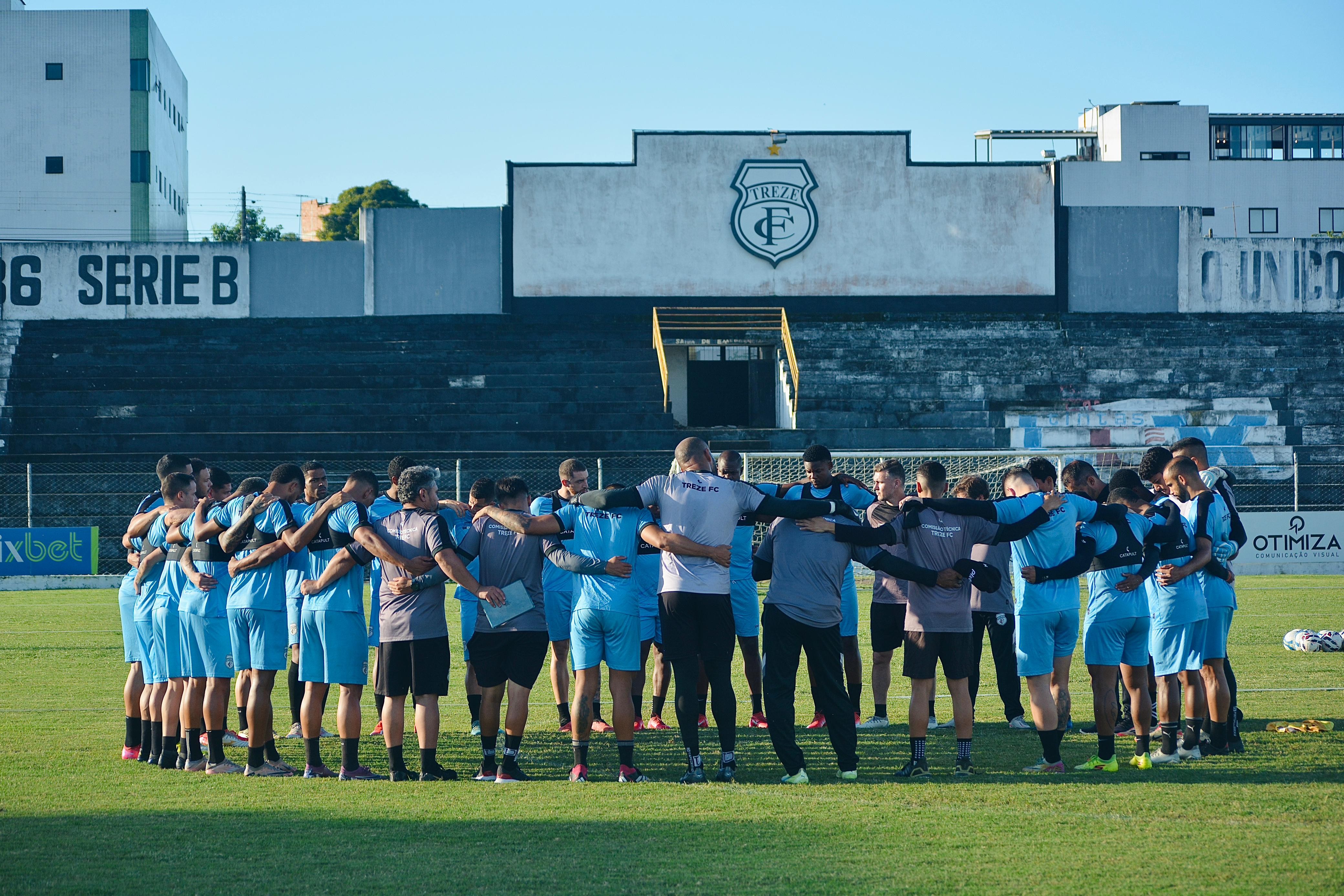 Elenco do Treze durante treino no Estádio Presidente Vargas
