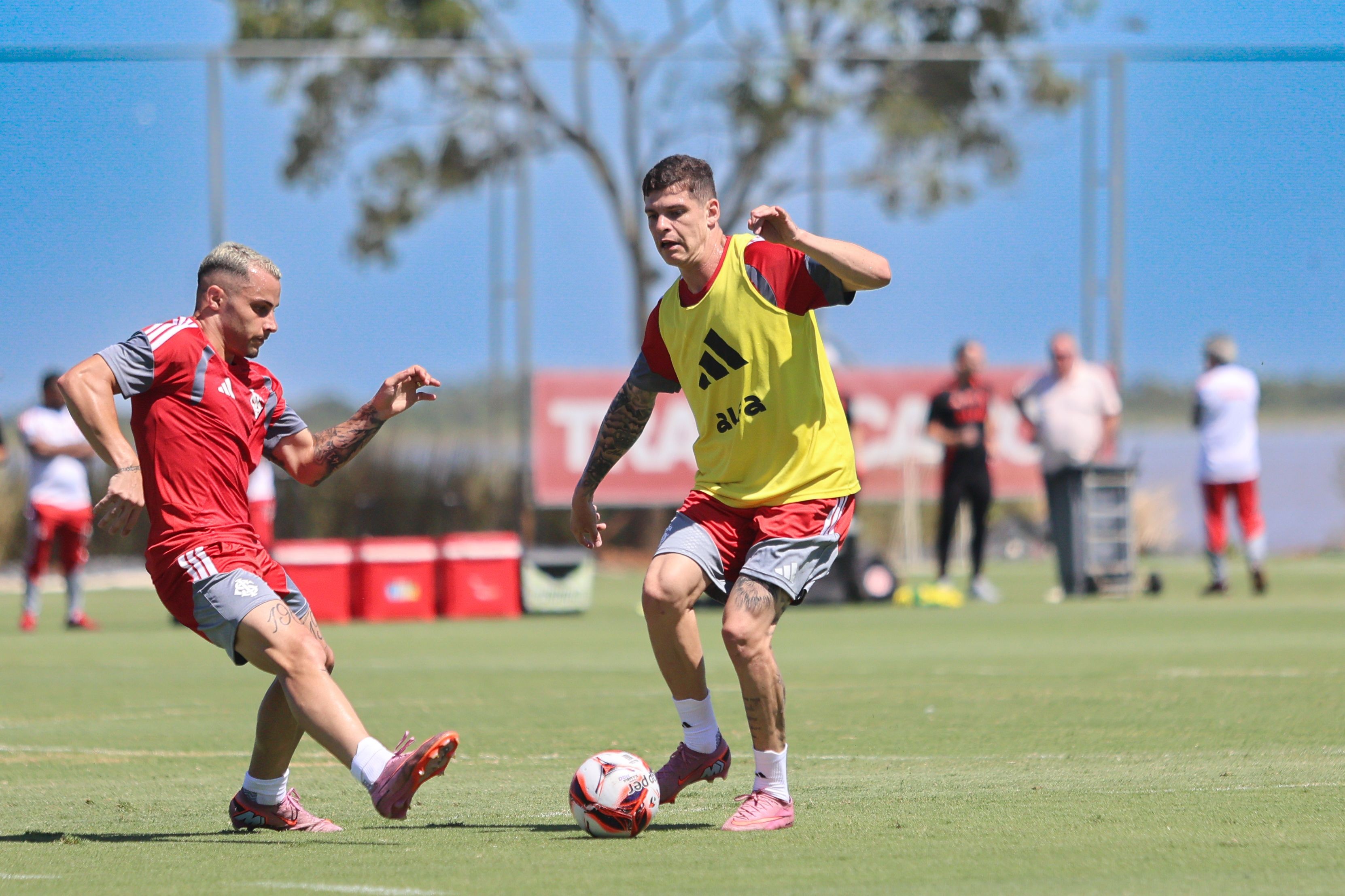 Villagra e Bruno Henrique (ao fundo) em treino do Inter