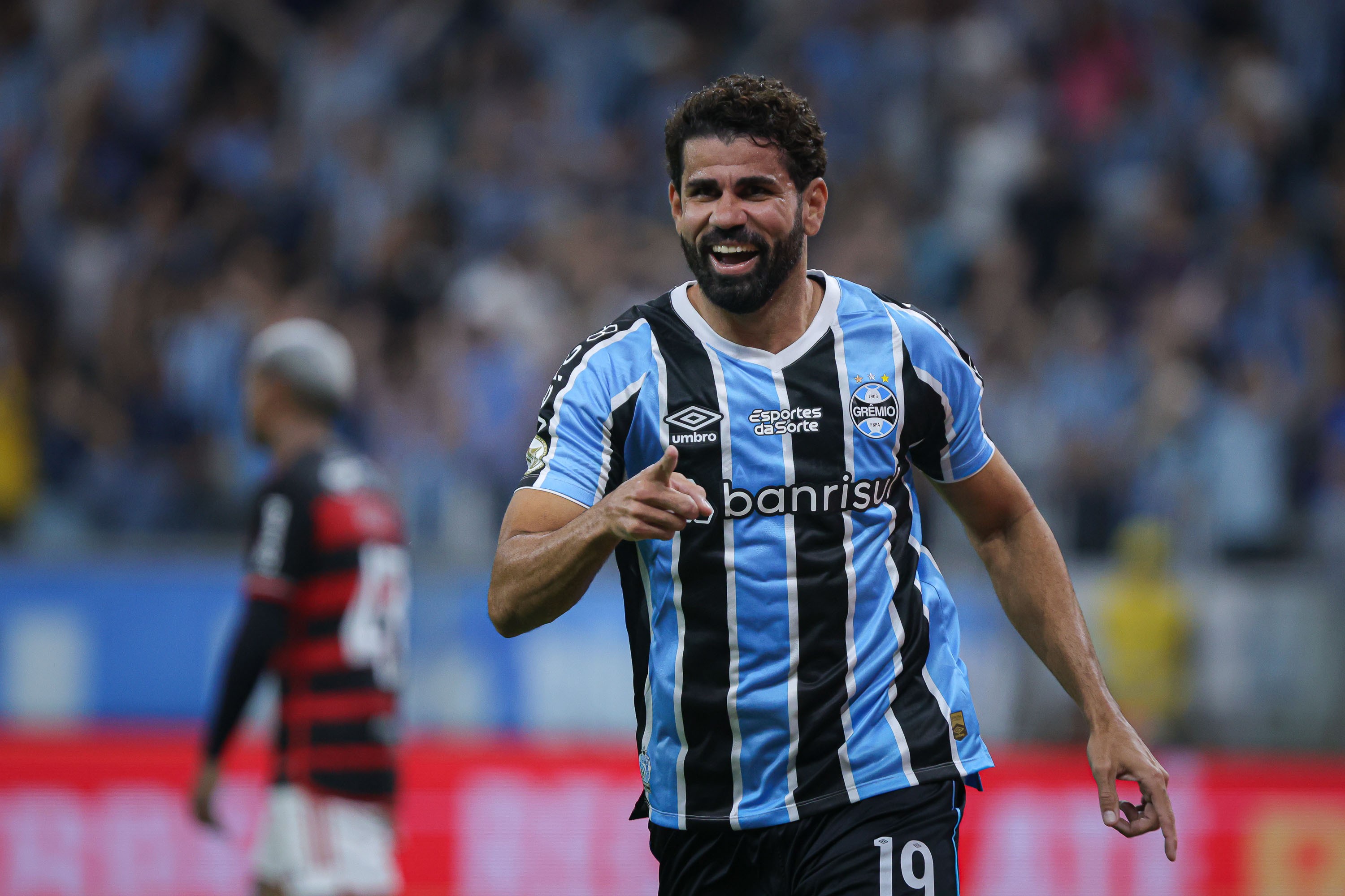 Diego Costa comemora gol do Grêmio contra o Flamengo